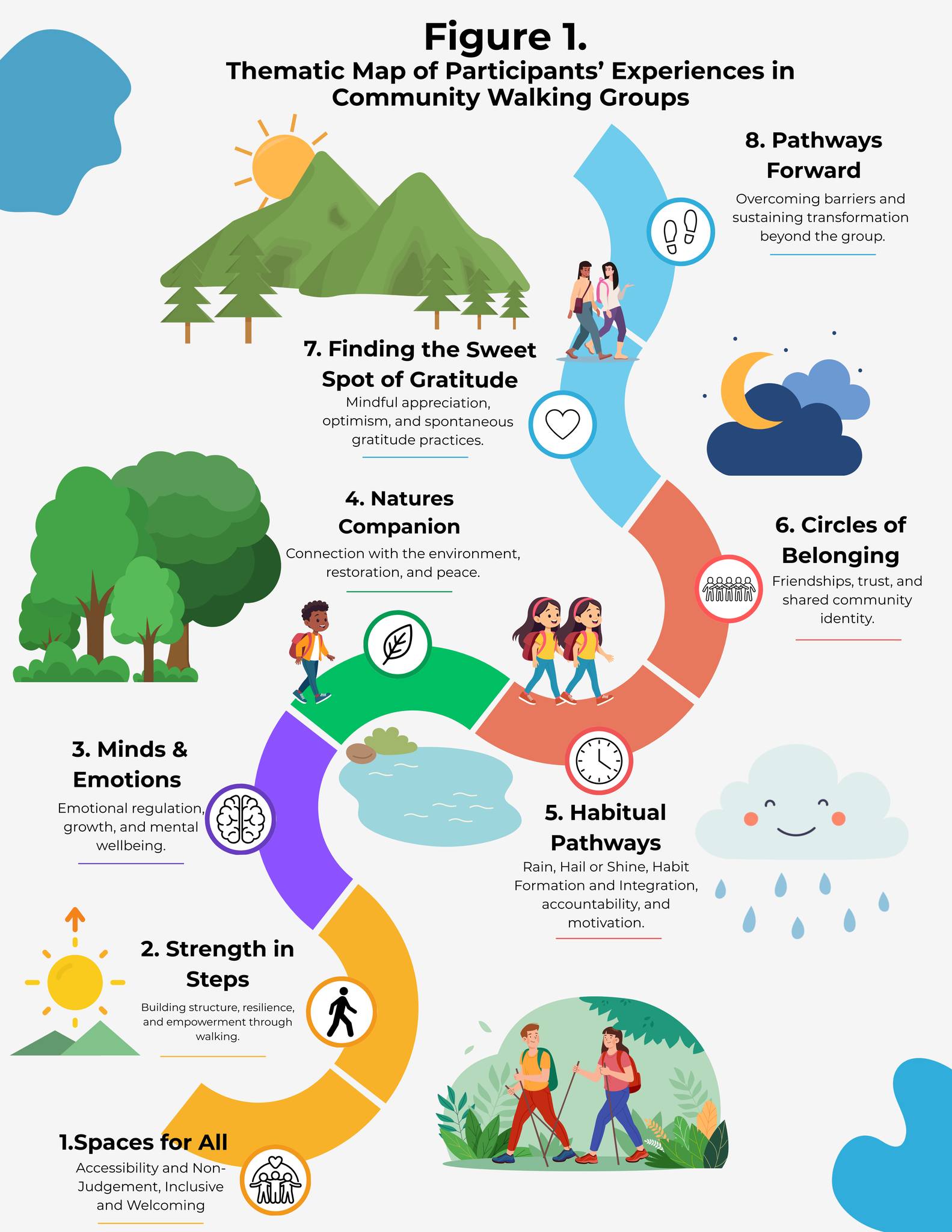 The diagram shared here highlights key findings from research conducted by Alicia Ann Wade and Dr Lauren Miller-Lewis (2025), exploring the impact of community walking groups on mental wellbeing, social connection, and gratitude in rural and regional communities.